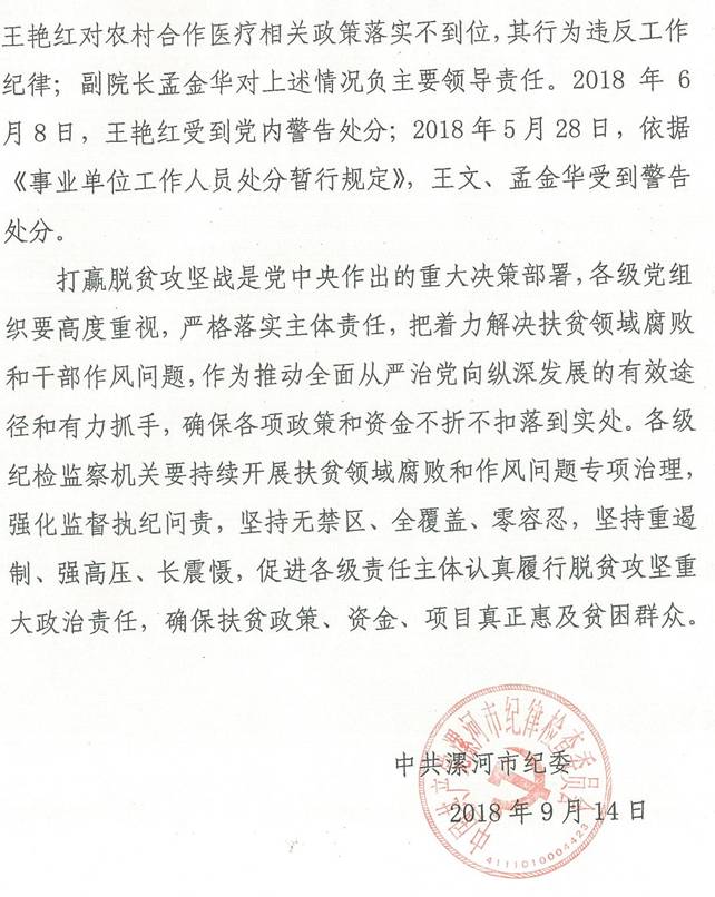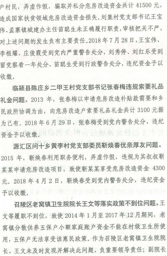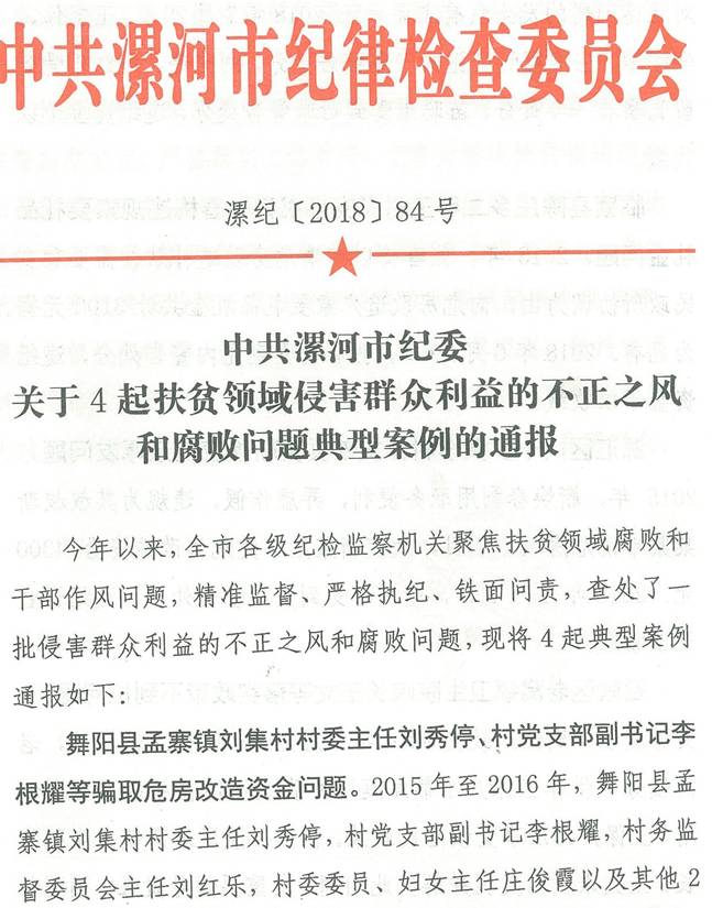 附件:中共漯河市纪委关于4起扶贫领域侵害群众利益的不正之风和腐败问题典型案例的通报
