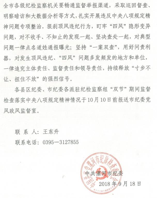 附件:中共漯河市纪委关于持之以恒正风肃纪确保中秋、国庆廉洁过节的通知